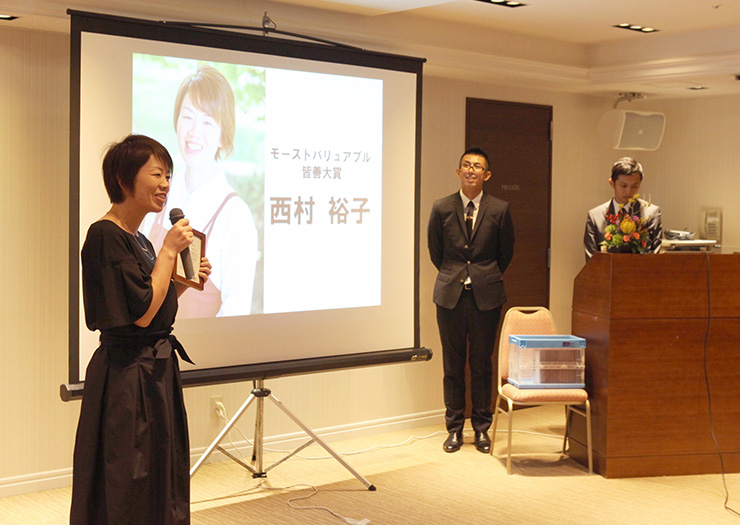 1年間の振り返りと翌期の方針を共有する場であると同時に、1年間頑張ったスタッフを表彰する場、讃え合う場です。表彰には15の賞があり、受賞者はスタッフによる投票で決まります。15枚の賞状を書くのは社長の仕事。部屋に閉じこもり、1枚1枚受賞者に向けた長文の賞状を書き上げます。社長曰く「1年で最も楽しく幸せな時間」。そして当日、1人1人の表彰をするうちに、あっちでポロリ、こっちでポロリ、次第に涙が落ち始め、やがて会場全体が涙で溢れてしまうのです。いろんなスタッフの頑張りに順々にスポットライトが当たり、悩んで頑張った姿を見てきたから、自分のことのように嬉しく感じます。表彰の時間があまりにも長引き、翌期の経営方針を発表せずに閉会したこともあるほどです。ぬくもりと涙、そしてたくさんの感謝が溢れる幸せな時間です。